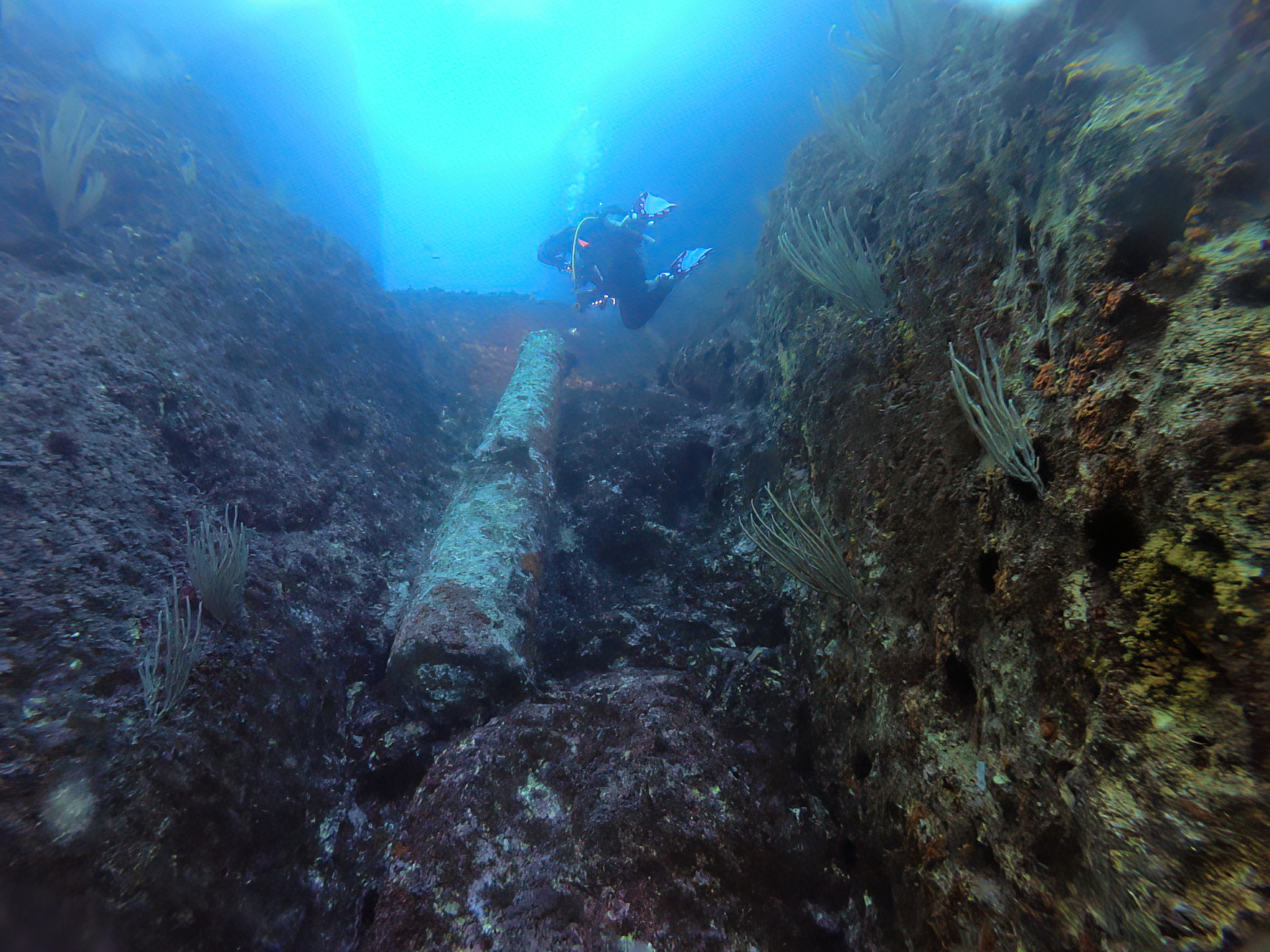 Pas vraiment une épave classique, voici l'un des 3 canons napoléoniens que l'on peut observer vers les 10 mètres de fond à la pointe de Cacau, Cassis, 08/11/2025.
