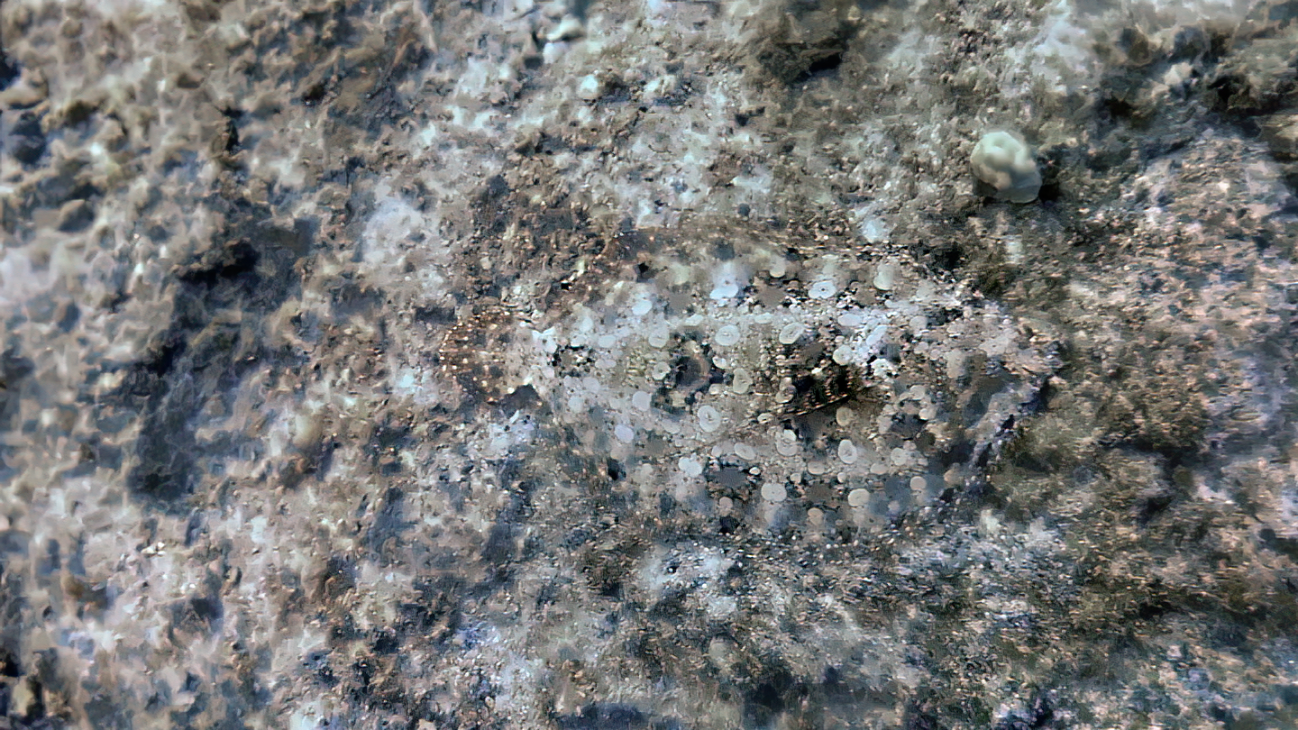 ce poisson plat quasiment invisible est ici posé sur un rocher dans les fonds de Big Island, la plus grande île d'Hawaii, splendide compromis entre mer (fonds marins du Pacifique), terre (Volcanoes National Park) et ciel (observatoire du Mauna Kea). 17/05/2022.