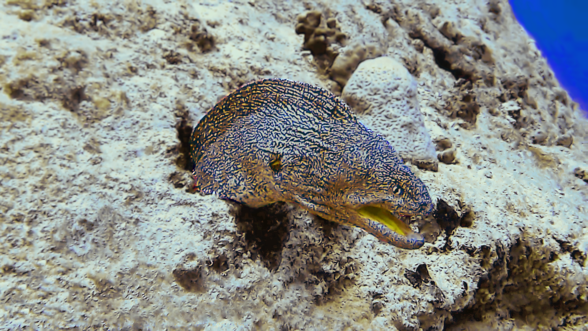 Cette espèce ovipare de taille respectable peut atteindre près de 2 mètres. Elle se nourrit principalement de petits poissons qu'elle chasse la nuit. Mer Rouge (Hurghada), Egypte, 10/03/2024.