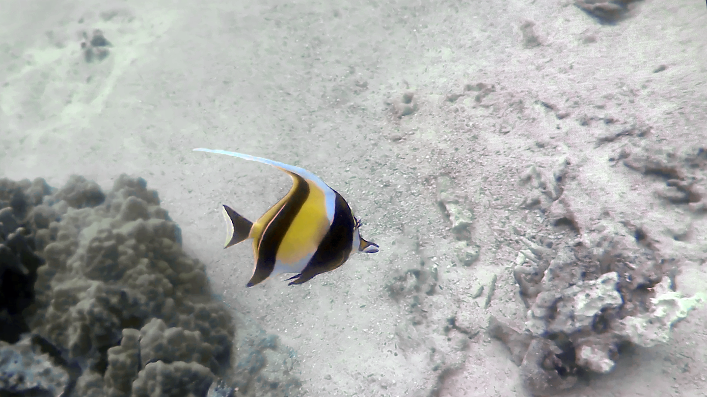 L'idole mauresque est un symbole des récifs coraliens de la zone indo-pacifique, ce joli petit poisson omnivore a plusieurs noms : idole mauresque, pore-enseigne cornu ou cocher blanc. Hawaii, 17/05/2022.