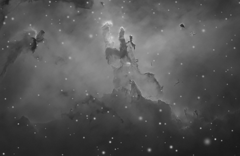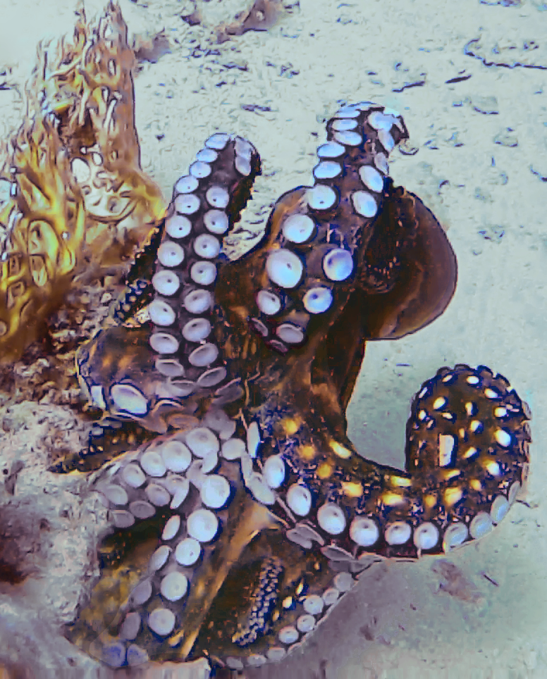 trou parmi les gorgones, l'animal semble nous surveiller de ses yeux