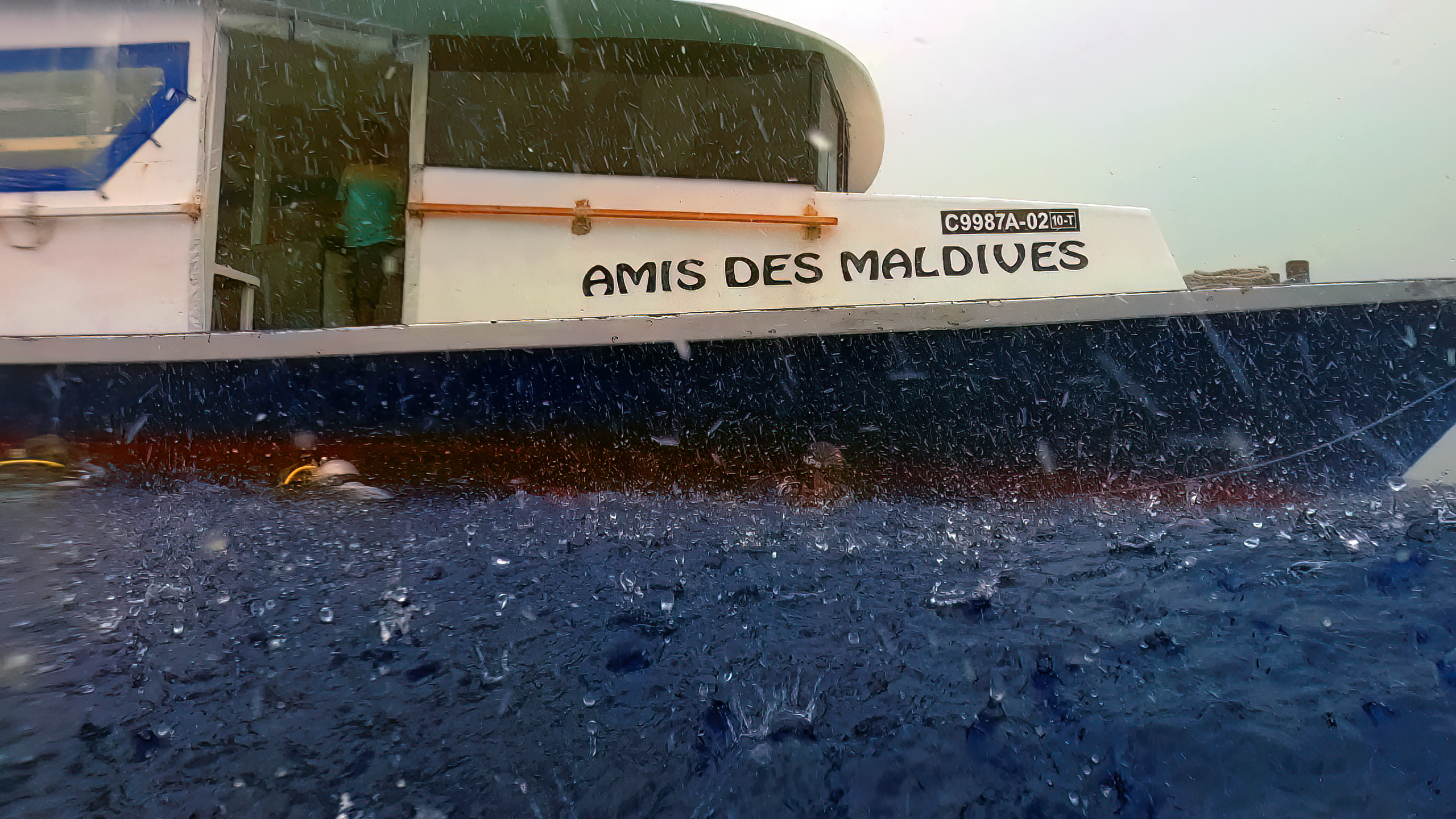de l'eau malgré un beau soleil en y entrant. Croisière Maldives Centre,