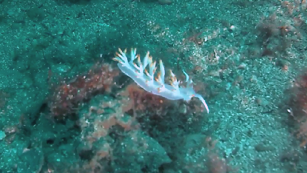 : joli nudibranche à l'aspect blanc translucide ; son dos est couvert