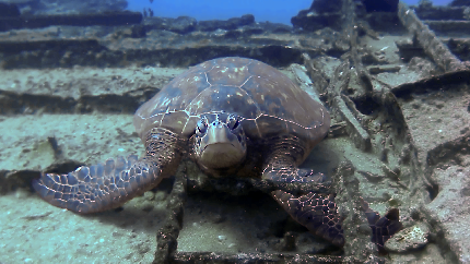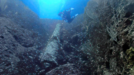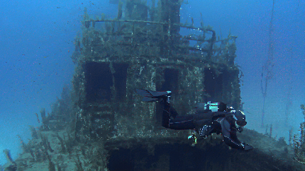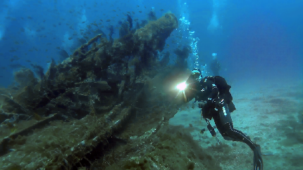 33 mêtres sur un fond sablé, cette authentique épave émerveille par la