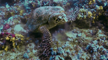 Tortue imbriquée croisée dans les Fjords de la Péninsule de Musandam, magnifique
