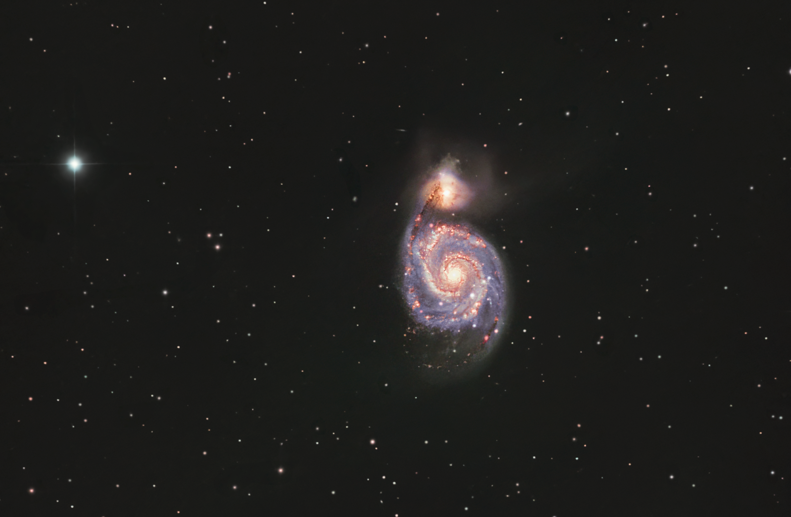 galaxie NGC5195 avec laquelle elle est en interaction gravitationnelle.