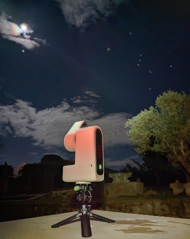 : le Seestar sous la Constellation d'Orion (à droite), lune et Jupiter