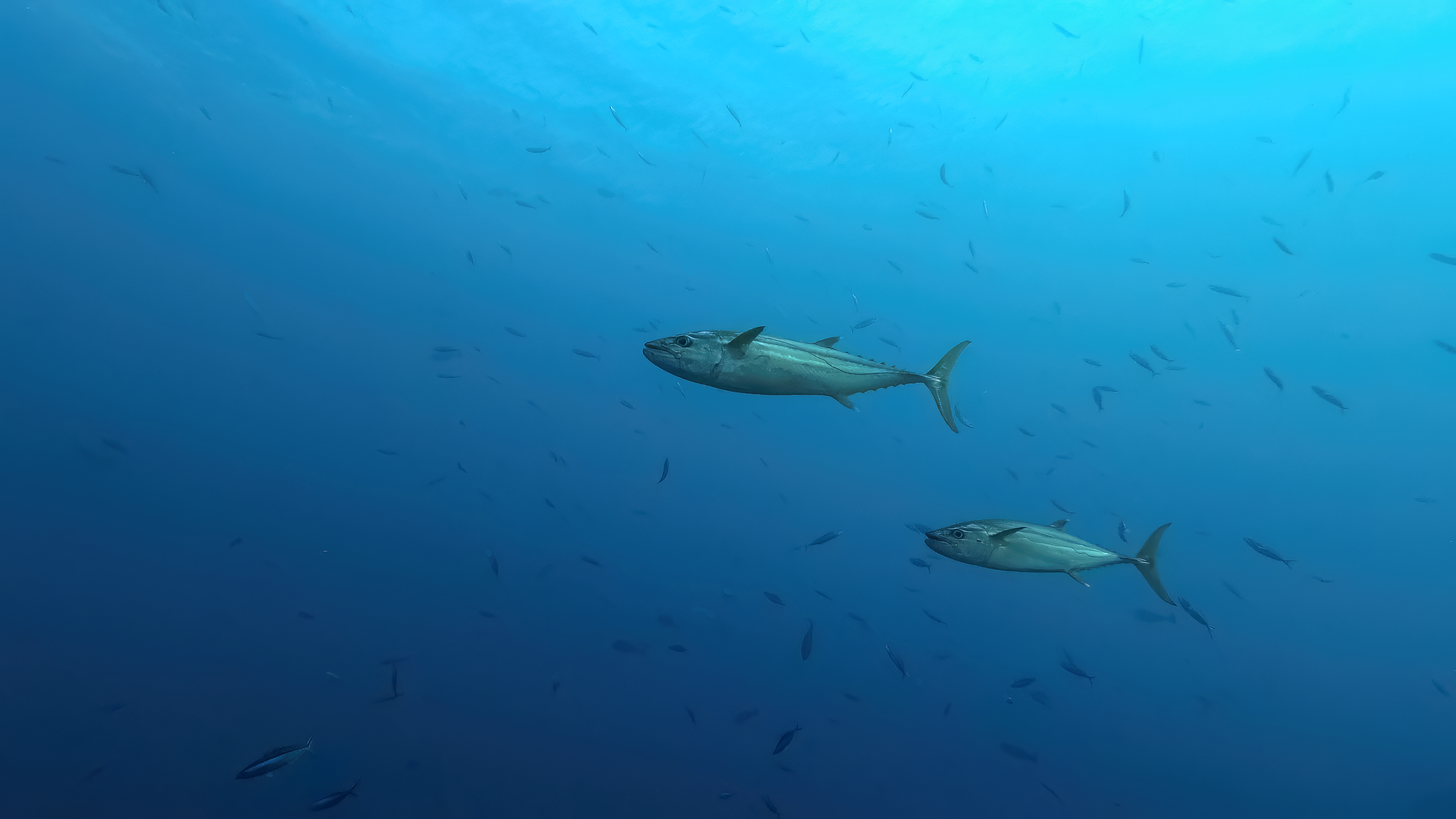 Magnifiques prédateurs, ces carnassiers. sont aussi d'aérodynamiques nageurs, pouvant filer à 80 km/h. Leur dentition pourvue de 50 canines coniques explique leur nom. Maldives (croisière 'Centre'), 20//02/2025.