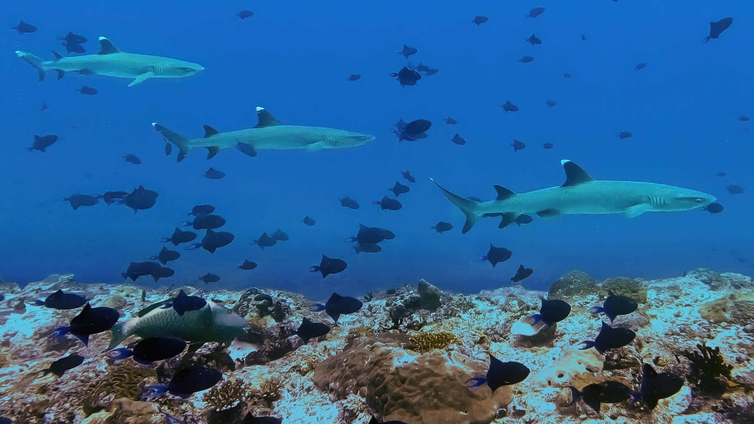 de ses nageoires, ce requin vit en petit groupe dans les courants le