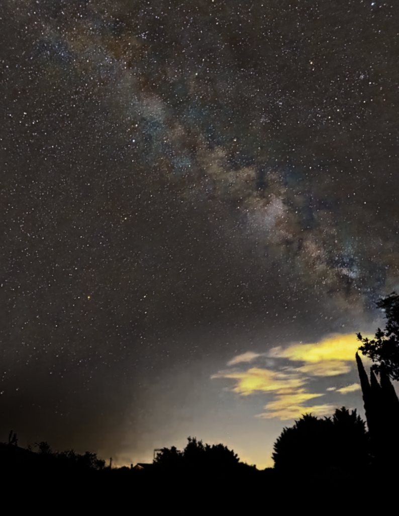 Voie Lactée observée dans le Vaucluse. Photo réalisée le 21 juillet 2025 à 23h56 ; smartphone Pixe 6 de Google, mode "astrophotographie" (exposition de 4 minutes). F-84210 Pernes-les-Fontaines.